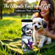 A fluffy Bichon Frise with a happy, open-mouthed expression is nestled amidst a vibrant and cheerful arrangement of sunflowers, pink peonies, and purple daisies. Painterly watercolour splashes in the background add to the lighthearted and joyful atmosphere of this delightful floral portrait.