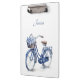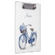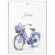 watercolor painting of a bicycle with a basket full of flowers in Delft Blue colours