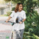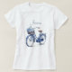 watercolor painting of a bicycle with a basket full of flowers in Delft Blue colours