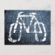 A photo of a bicycle painted on a road. In cool toned black and white.