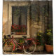 BICYCLE LEANING ON HOUSE SHOWER CURTAIN