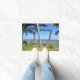 A Doormat with a photograph of a colourful blue and green Bicycle by the ocean, with Palm Trees, in Florida, with the word Welcome.