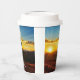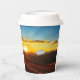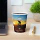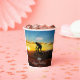 Teenage boy's personalised birthday party paper cup, with bicycle rider graphic and a sunset background. Add your person's name and age at the prompt! From HAMbyWhiteGlove aka HAMbWG