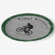 Teenage boy's personalised birthday plate, with bicycle rider. Background is grey with dark green. Add your child's name at the prompt! From HAMbyWhiteGlove aka HAMbWG