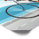 Nice poster features beautiful young woman riding her bicycle along the sea shore. A flock of seagulls flies on the background. Designed in the shades of blue. You can easily personalise the text at the upper part of the poster using Zazzle online tools.