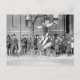 Old photo of Herbert Bell & Joe Garso, one-legged trick cyclists, performing bicycle tricks for a crowd. Photograph taken in 1921.