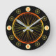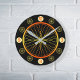 A bicycle wheel in bright orange and yellow colors is the inspiration for this striking design. The large wheel in the center has smaller wheels replacing some of the numbers around it, and it looks stunning on a black background. This is a modern clock that will appeal especially to the keen cyclist.