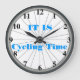 A side view of a bicycle wheel forms the basis for this wall clock, with the words "It is Cycling Time" written in the center. These words can be customized by you.