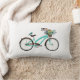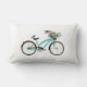 Bicycle With Bird and Flower Basket Turquoise Blue Lumbar Cushion
