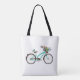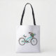 Bicycle With Bird and Flower Basket Turquoise Blue Tote Bag