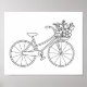 Bicycle with Flower Basket Colouring Page Poster