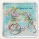 A beautiful spattered polychromatic water coloured bicycle with flower baskets on blue burlap rimmed with white filigree, and with a greenish grey and white textured border around the blue burlap. Image credits: Pixabay.com – Image# 2416366, Image# 489879, Image# 2148492, Image# 1064162