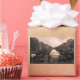 Rectangular photo sticker with some bicycles locked to the bar of a bridge over Prinsengracht canal lined by traditional canal houses at sunset in the city centre of Amsterdam in the Netherlands.