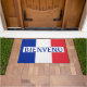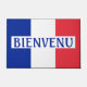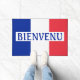 This custom welcome door mat features the greeting "Bienvenu" printed across the centre. Bienvenu is the French translation for "Welcome" and it is printed in blue across the centre in blue over a white banner. The France flag colours are bold and vibrant. Proudly greet your visitors to your French home or business. You can personalise the welcome mat to include your family or company name, or other custom text.