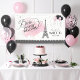 Welcome your guests in true Parisian style with this Sweet 16 birthday banner featuring an Eiffel Tower illustration, balloons, and confetti. This design blends glamour with a playful French twist. Flowing script 'Bienvenue' (Welcome) text adds to the Night in Paris vibe. The stylish blush pink, black, and white colour palette makes this design perfect for a Paris-themed birthday party that’s as fashionable as it is fun. Personalise with your event details for a truly unforgettable soirée. Search ID1162 to see other coordinating products in this design set. NOTE: design includes some generative content.
