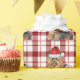 An adorable watercolor illustration of a Biewer Terrier dog, pairs with a red seasonal plaid patterned background, and the dog wears a festive holiday hat.