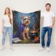 Biewer Terrier Dog Whimsical Halloween Painting Fleece Blanket