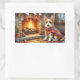 Biewer Terrier Fireplace with Christmas Lights Rectangular Sticker