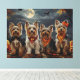 Unleash the spooky spirit with this eerie Halloween design featuring a pack of dogs under a dark, moonlit sky, surrounded by flying bats and glowing pumpkins. Perfect for those who love a touch of frightful fun with their furry friends!