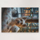 Biewer Terrier With Christmas Lights Holiday Jigsaw Puzzle