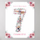 Big 7th Birthday Girl Photo Collage Pink Flower Poster