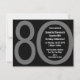 Cool modern black and grey 80th birthday invitation, features large numbers eight and zero, with your custom party text inside the zero. Invite friends and family to your monumental milestone party!