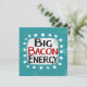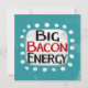 "Big Bacon Energy" is a cute text design in blue with black and red text, along with a white accent shape and white textured whimsical dots surrounding it.