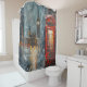 A lovely shower curtain of London cityscape in abstract expressionism style. The design includes one famous vintage red phone booth and the Big Ben watch tower.