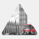 A red double decker bus passing in front of the Big Ben clocktower in London England.
