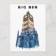 Chime into the heart of London with this stunning Big Ben postcard! This captivating watercolor illustration features the magnificent Big Ben (Elizabeth Tower), an enduring symbol of London, United Kingdom. The artistic style beautifully captures the grandeur and intricate details of this iconic British landmark, with its famous clock faces and a subtle watercolor base.