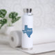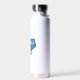 The bottle looks even better in real life. The ice cubes I put in lasts all day! I have my bottle with me all the time. It's summer and having something cold to drink feels amazing. With this bottle I always have something super cold. I have only tried the hot drink once and it lasted a long time as well. The color blue is a navy blue and the white printed on it is vibrant. It printed perfectly. I love my personalized smile water bottle.