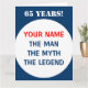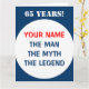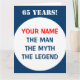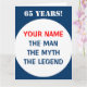 Funny 65th Birthday XL card for men | The man The myth The legend greeting card. Humourous card idea for dad, uncle, grandpa, brother etc. Personalizable age and name. Sixtyfive year old. Big extra large size.