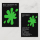 A business card design with a bold ink blot motif sure to grab attention. Company details on the front with name, title and other contact details on the back with a smaller blot motif.