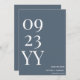 Announce your wedding in style with the Big Bold Date Dusty Blue Save the Date. Featuring a serene dusty blue background with bold white letters and numbers, this minimalist design prominently displays your wedding date alongside the groom and bride's names. Perfect for modern, elegant, or romantic weddings, this save-the-date card combines simplicity and sophistication, ensuring your guests mark their calendars for your big day.