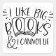 I like big books and I cannot lie sticker. Black and white text and book outline.
