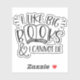 I like big books and I cannot lie sticker. Black and white text and book outline.