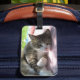 This luggage tag features a darling cat named Big Boy who was abandoned in the wild by his family, trapped, neutered and released. He is seen in this picture lying on a table in our backyard where we fed him and where he got daily doses of love and attention before we found him a forever home with a nice family. Who can resist this adorable tabby cat with a pink nose, white collar and one cropped ear tip.