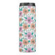 Personalized thermal tumbler with big bright flowers pattern on light background.