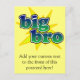 Celebrate the big brother with this fresh gear. Yellow and blue with "big bro", and a comic-book style burst make this a nice addition to the little boy's collection. Great for the arrival of a new sibling, at the baby shower or anytime! Use "customise it" to personalise any design!