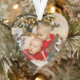 Celebrate sibling love with this heart-shaped ornament featuring a golden frame adorned with holly, pine, and ribbons for a festive touch. The front showcases your memorable photo, while the back displays a heartfelt brother love quote on a warm brown background. Personalise with your photo, name, and year to create a meaningful keepsake for the holiday season.