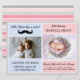 Let your "Little Mister" proudly announce the arrival of his little sister! This birth announcement is split into soft blue for the little mister/big brother and a soft pink for the baby sister. The blue side displays "Little Mister has a sister!" along with a little mister moustache. The big brother's name is displayed at the bottom with the message of his excitement of his little sister's arrival. It also displays an image of big brother with his baby sister. The right side is a soft pink that introduces the newly arrived baby girl. It also features an image of her along with her birthday and time of birth, the birth details (weight and length) and parents and sibling name(s). The back is a beautiful striped back in shades of pink and grey.