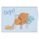 This David Walker illustration from the Candlewick Press book "Bears on Chairs" shows the adorable blue-and-white polka-dotted Calico Bear about to tumble onto the floor--and the look on his face couldn't be cuter. These three bear friends trying to share two chairs pushed together will make you say "Aww!" every time you see it.