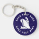 Big cargo ship custom keychain. Make your own keychain for sailor, boat captain, dad, friend, skipper, boss, co worker etc. Navy blue and white maritime icon with bold text.