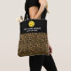Super cute double-sided tote bag for your pickleball paddle and gear. Design features a yellow pickleball, two lines of custom text set above big jungle cat animal print pattern. Get matching ones for your club, team or pickleball trip . . . Makes a nice gift for the pickleball player in your life.