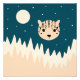 Big cat night sky, illustration in crude pastel colors of a feline face in a full moon sky over a forest