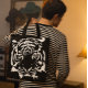 big cat portrait graphic black white pop art tote bag