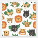 Big cat wallpaper for the nursery room or kids room with a pattern of big jungle cats and savannah cats with lions, panthers, tigers, leopards, ocelots etc. Big cat themed nursery wallpaper fun charming lions, panthers, tigers, leopards, and ocelots with different expressions and some greenery. Tigers, lions, and panther wallpaper for the boys room or nursery.