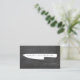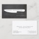 An oversized, graphic white chef's knife contains your name or business name for an eye-catching logo on this modern business card design. Perfect for personal chefs, catering businesses, restaurants, food trucks, food writers and more! © 1201AM CREATIVE