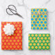 Fun, retro polka dot gift wrap! A set of three wrapping paper sheets, perfect for birthdays, anniversaries, housewarmings, kids' gifts, and more. Printed colours: red, orange, blue, green and yellow.