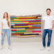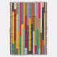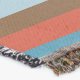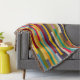 This throw blanket has a geometric design of colourful stripes running vertically.